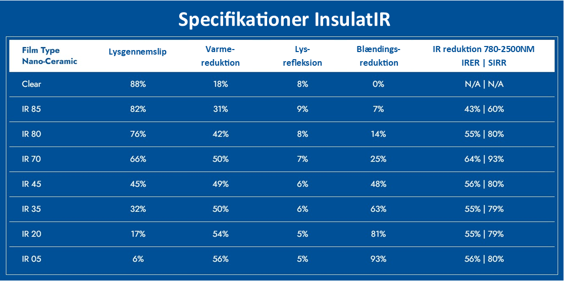 Selv ved højt lysgennemslip opnås en høj varmereduktion grundet den nano-keramiske konstruktion, der giver højere beskyttelse mod de længere IR-stråler.